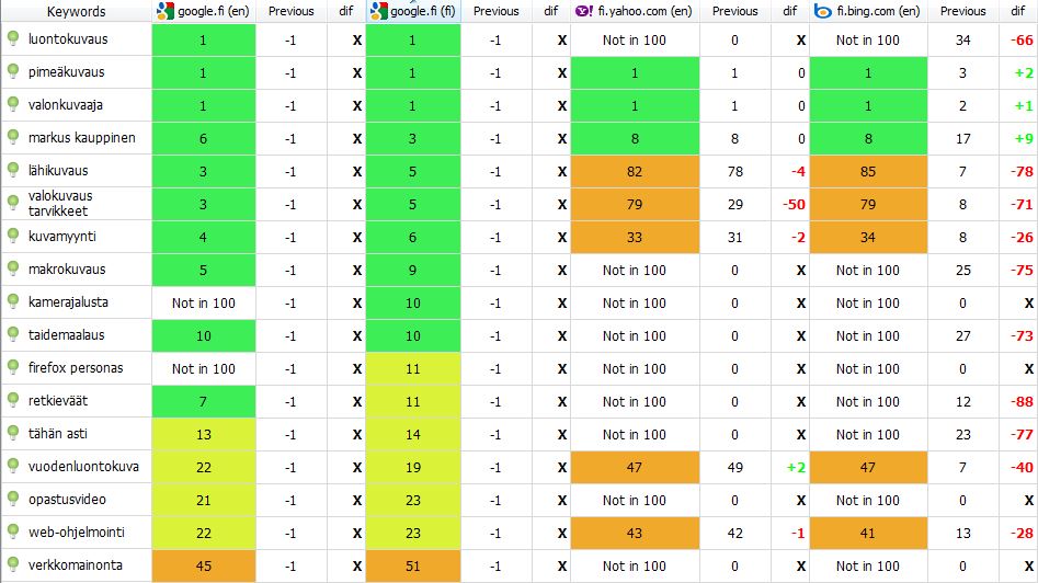 Lähikuvauksen sen sijaan oletan nousevan kesän koittaessa, vaikka todella hienolla sijalla se nytkin jo on. Kuten kaikki jotka ovat top 10 avainsanoja. Tuo tarkoittaa sitä, että linkit löytyvät ensimmäiseltä Googlen hakutulos sivulta!